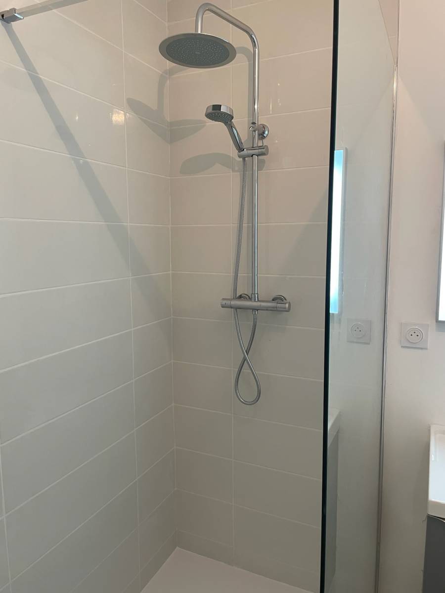 ✔️ L’installation d’un receveur de douche et d’une paroi moderne, pour une utilisation pratique et esthétique.